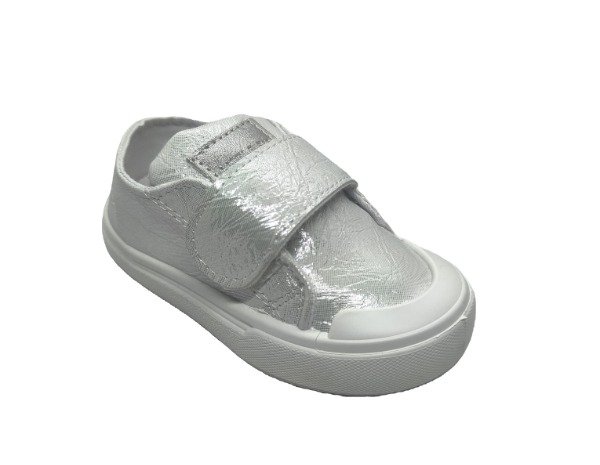 Zapa un velcro de PU metalizado plata con abrojo